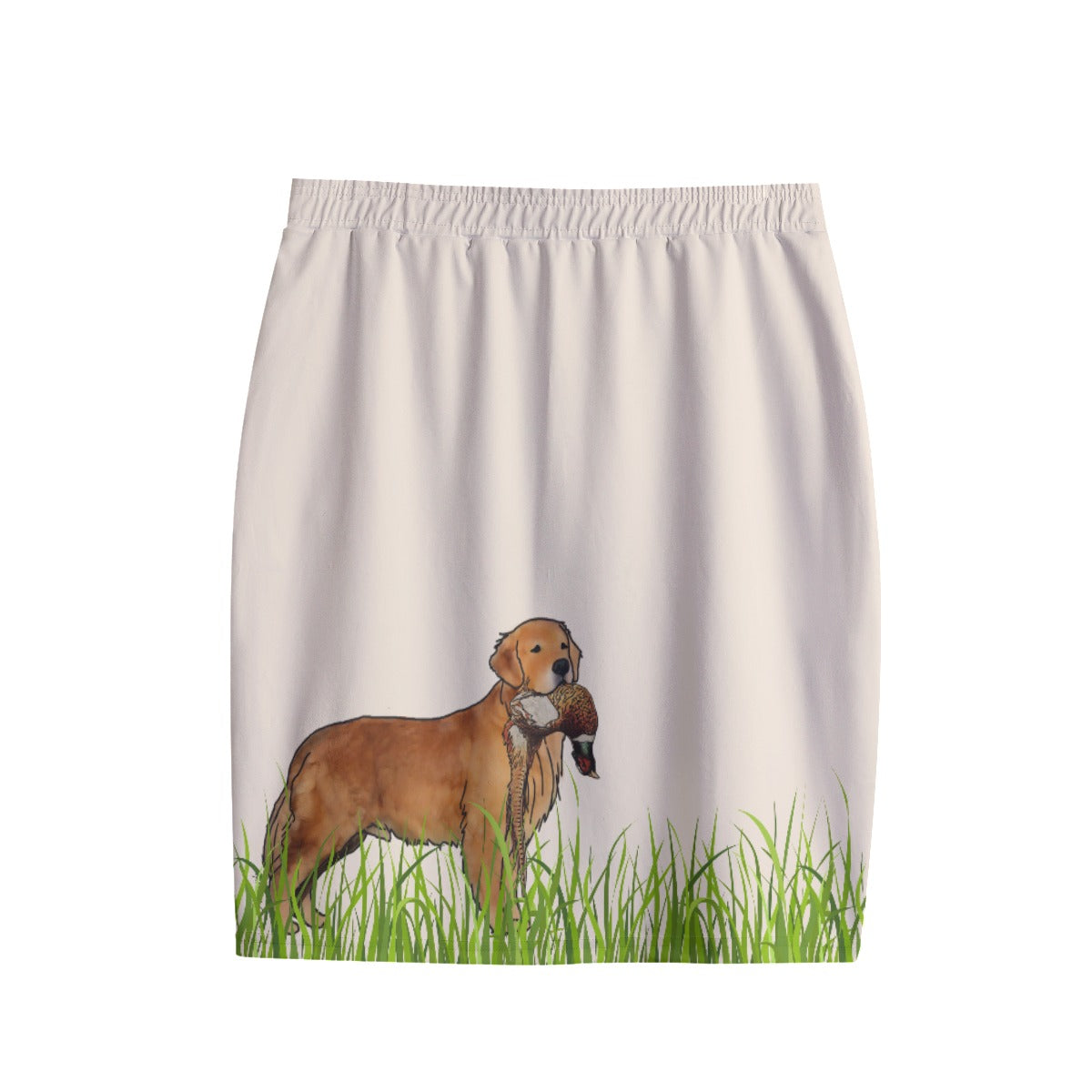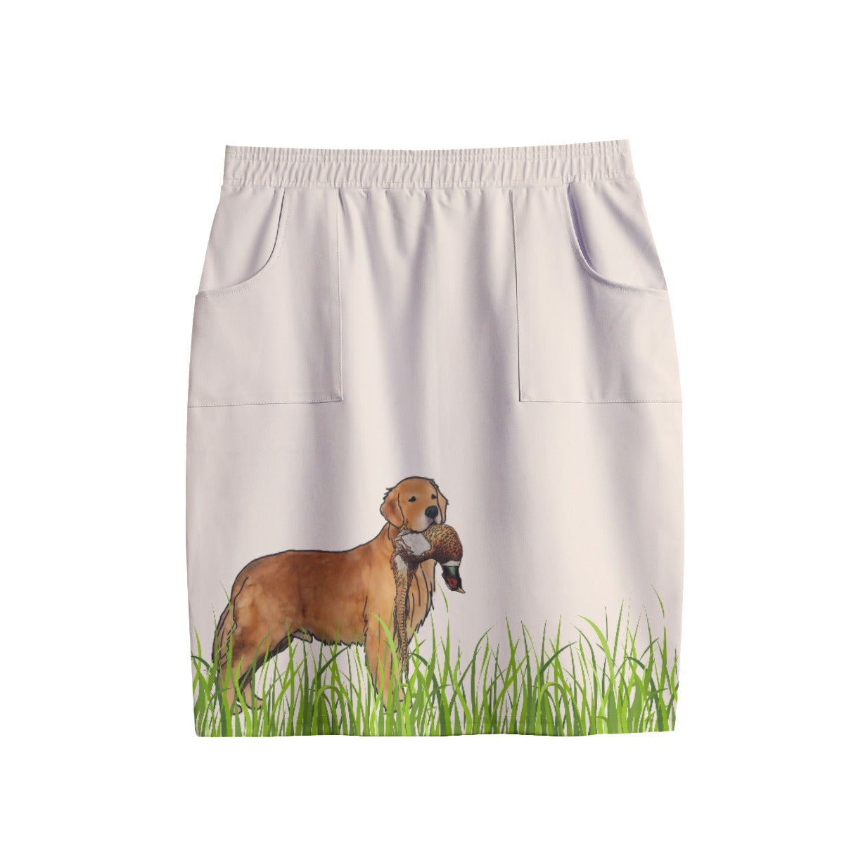 I designed this pencil skirt with the dog show enthusiast in mind! The fabric has a very nice stretch as well as an elastic waist band, for comfort while bending and moving in the ring! It has pockets to keep your bait and the fabric is wrinkle resistant, so you can roll it up, ball it up, or stuff it into a bag and take it out last minute to get to the ring. The exterior has a smooth texture which displays the designs beautifully but it also makes for an easy wash surface and the fabric is thick enough to smooth out leg dimples and is non-see-through, but also light weight and breathable.