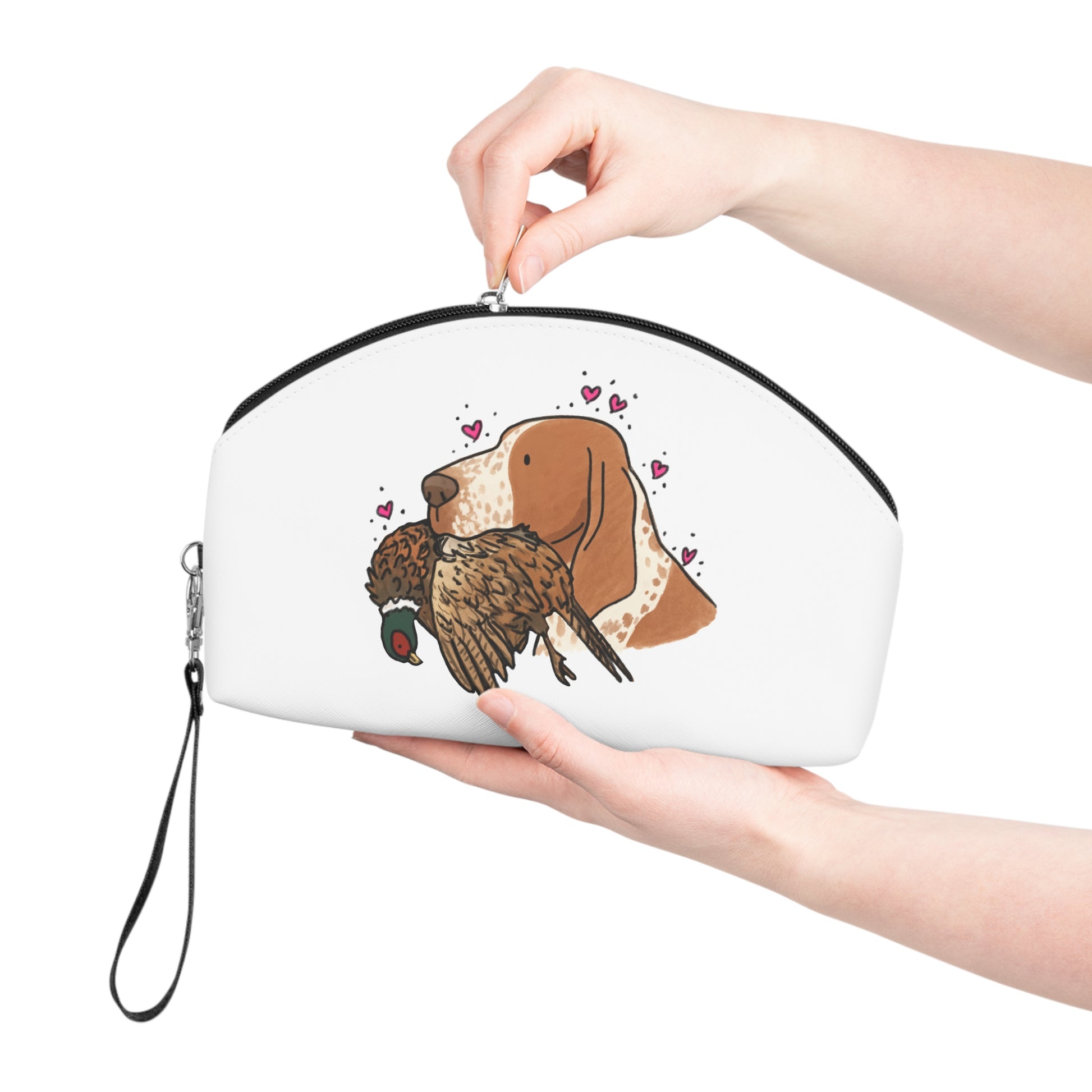 This curved-top bag features one of my original hand-drawn designs printed on eather-feel PU material. It’s smooth to the touch, lightweight, and easy to toss into a tote, backpack, or grooming bag without taking up too much space.