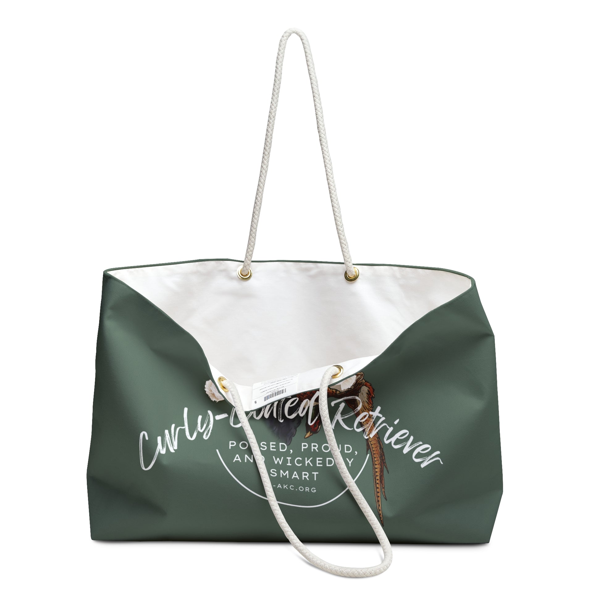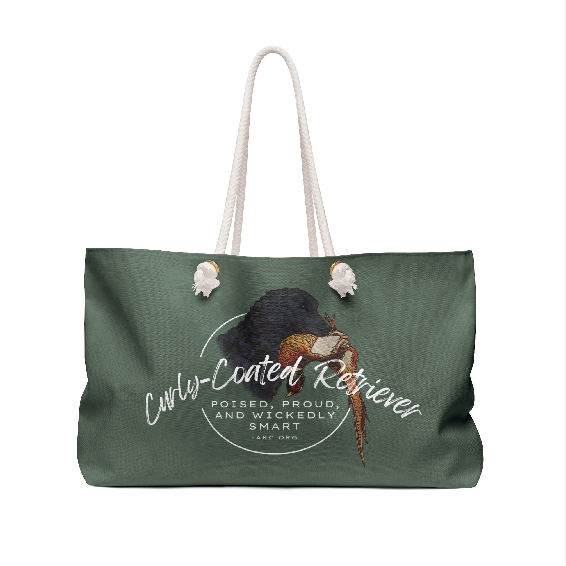 Our oversized Weekender Tote is perfect for your weekend at the dog show, beach or travel! The wide-mouthed, durable bag holds a generous amount of items and is easily held by its thick rope handles. This is one of my favorite totes to use when I need to grab extra clothes or dog supplies or even snacks and drinks for the car, before a big weekend away!